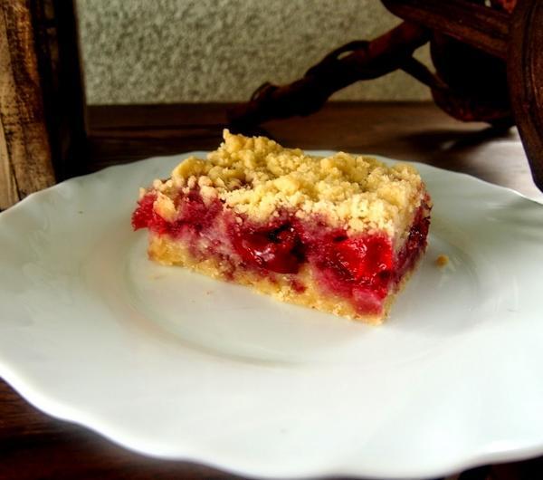 wiśnie i posypujemy resztą kruszonki (równomiernie). Pieczemy w 180 stopniach przez 45 minut (do zezłocenia się kruszonki)Smacznego!