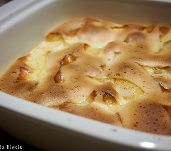 Potrzebujemy:2 jabłka4 duże żółtka3-4 łyżki cukrucynamon (u mnie świeży starty na tarce, ale może być 1/3 łyżeczki cynamonu w proszku).Jabłka myjemy, obieramy i kroimy na ćwiartki. Układamy w naczyniu żaroodpornym jedno obok drugiego.Żółtka ubijamy z cukrem aż zrobią się białe i gęste, łapki miksera będą zostawiały na nich ślad w trakcie ubijania.Piekarnik rozgrzewamy do 180 stopni.Jabłka posypujemy cynamonem i zalewamy koglem moglem.Pieczemy w 180 stopniach przez 15 minut i w 200 stopniach przez kolejne 4-5 minut (zarumienią się z wierzchu).Najlepiej podawać z ulubioną konfiturą.Smacznego!