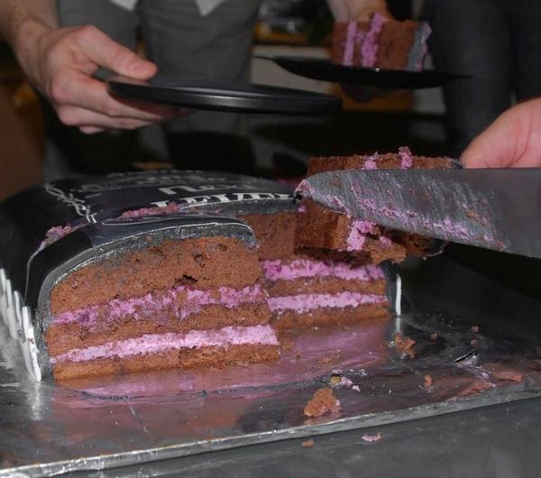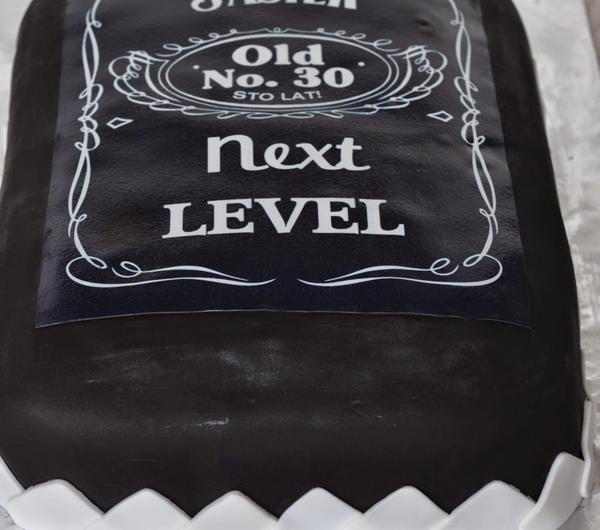 Składniki:Biszkopt (na blachę o wymiarach 35x25 cm, odmierzałam miarką z ml):12 jajek440 ml cukru440 ml mąki150 ml mąki ziemniaczanej175 ml kakaoKrem malinowy:500 g malingarść jagód (dla koloru)1 szklanka cukrusok z połowy cytryny4 łyżeczki pektyny400 ml śmietany kremówki (30 lub 36%)500 g serka mascarponeMasa maślana (pomijamy, jeśli nie robimy dekoracji z masy cukrowej):2,5 kostki masła1 szklanka cukru pudru2 łyżki mleka2 łyżeczki ekstraktu z waniliiczarny barwnik spożywczyPoncz:szklanka zaparzonej mocnej herbaty z cytryną, wymieszana z 50 ml Jacka Daniel'sa Old No. 7Dodatkowo:1100 g czarnej masy cukrowej200 g białej masy cukrowejwydruk jadalny na papierze cukrowymodrobina srebrnego pyłku spożywczegoPrzygotowanie:Biszkopt wg tego przepisu. Piec ok. 50 minut.