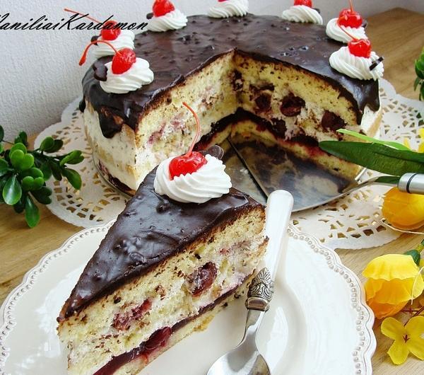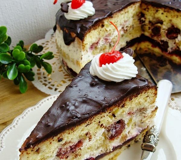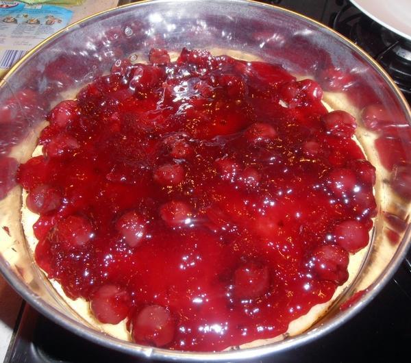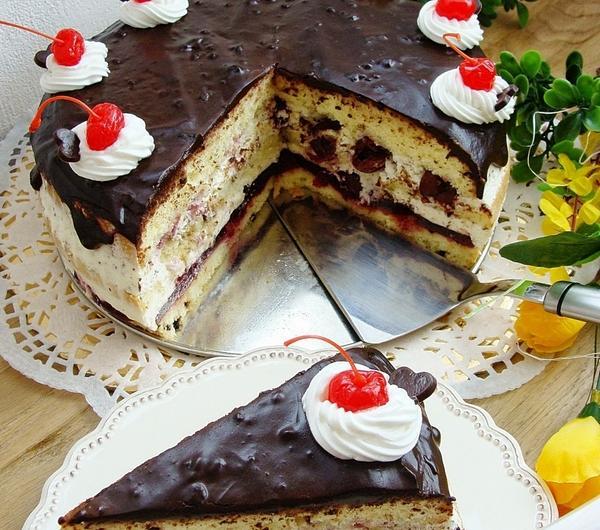 wiśni wyłożyć połowę masy śmietanowej białej, przykryć drugim krążkiem nasączyć ponczem rozsmarować masę z