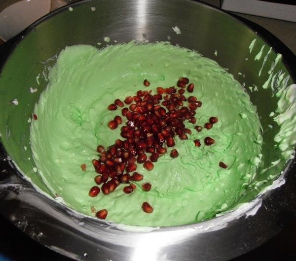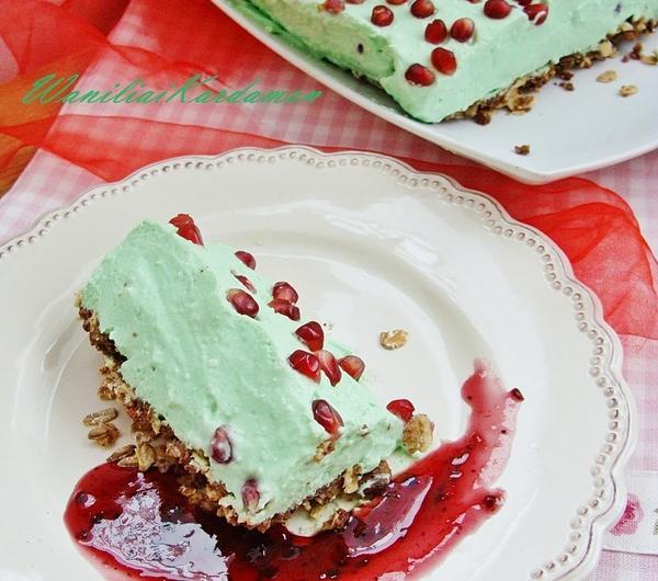 likier miętowy oraz odrobinę zielonego barwnika, miksujemy na gładką masę, dodajemy obranego