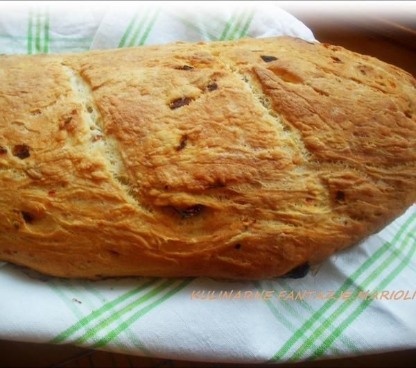 bagietka jest pyszna,chrupiąca i pachnąca a najważniejsze że możemy ją upiec kiedy tylko chcemy.Dzisiaj z dodatkiem