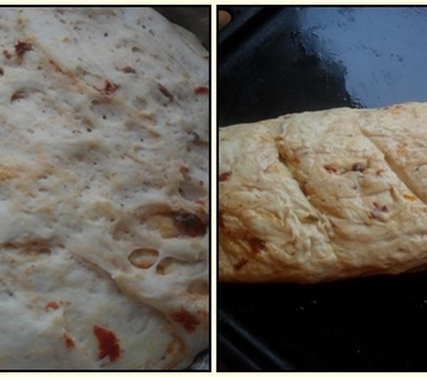 oliwą i z ciasta formujemy podłużny wałek,przekładamy na blaszkę.Pozostawiamy na 15 minut do podrośnięcia lekko ją nacinając na wierzchu.Piekarnik nagrzewamydo 200 * C,pieczemy