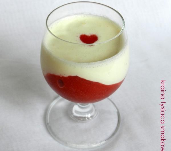 kokosowego. Podajemy od razu.4. Serduszko namalowałam końcówką łyżki - nałożyłam odrobinę lekko rozpuszczonej masy truskawkowej na masę