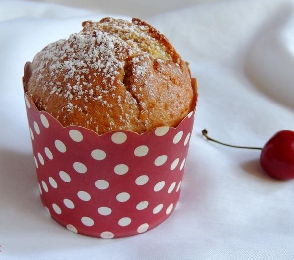 czereśni (przekrojonych na pół i pozbawionych pestek)Przygotowanie:1. Piekarnik rozgrzej do 180 stopni. W osobnych miskach wymieszaj składniki suche i mokre.2. Wsyp składniki suche do mokrych i szybko wymieszaj łyżką.3. Dodajemy