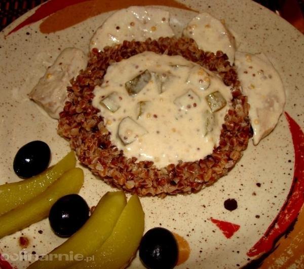 Pyszne kruche polędwiczki w sosie. Idealnie komponują się z ogórkiem kiszonym i kaszą gryczaną.Składniki1 średnia polędwiczka1 łyżka miodu4 łyżki musztardy ziarnistej2 łyżki musztardy chrzanowejsos sojowy4 średnie ogórki kiszone1 szklanka wodyoliwa z oliwekpieprz, sól do smakuSposób przygotowaniaKrok 1Polędwiczki kroimy w mniejsze części i marynujemy w sosie sojowym i oliwie z oliwek. Zostawiamy na min godzinę. Następnie obsmażamy je dodajemy pokrojone w kostkę ogórki kiszone. Zalewamy 1 szklanką wody z miodem, musztardą, solą pieprzem i dusimy około 15 minut. Dodajemy śmietanę (zahartowaną najpierw) i przyprawiamy do smaku. Dobrze smakuje z kaszą gryczaną.VN:F [1 . 9.22_1171]proszę czekać...Rating: 7.8/ 10 (6 votes cast)Polędwiczki w sosie śmietanowo- musztardowym, 7.8 out of 10 based on 6 ratingsPodobne wpisyPolędwiczki pieczone z salsą z paprykiJem zdrowo: Kasza gryczana z kozim serem i pieczonymi burakami