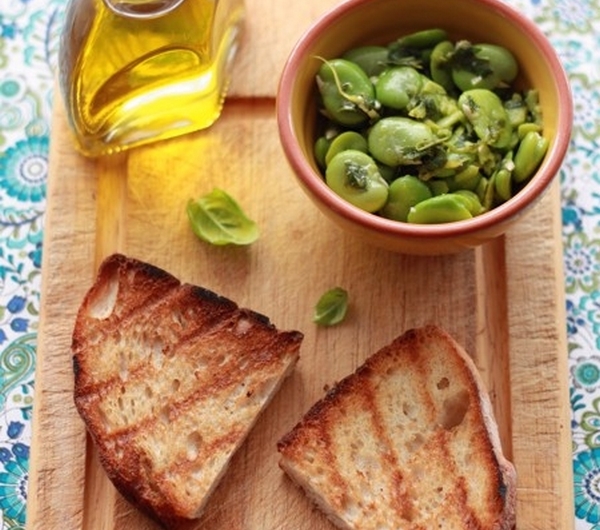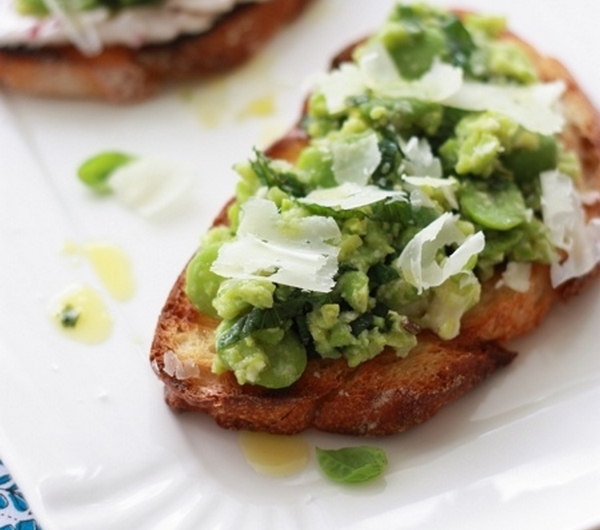 ‚Przede mną kolejny gorący tydzień, nie tylko jeśli chodzi o temperatury, ale przede wszystkim o koniec kolejnego kursu i egzaminy (choć to oczywiście biedni uczniowie mają stres, nie ja ;)). W kuchni w związku z tym pojawia się przede wszystkim to, co szybkie i bezproblemowe, a dzisiejsza bruschetta* jest idealnym tego przykładem.‚* ze względu na dodatki, moja poniższa propozycja być może nie powinna zwać się bruschettą, która to tradycyjnie serwowana jest z oliwą, czosnkiem i pomidorami (czasami również z mozzarellą), a raczej ‘crostini’, które to mają bardziej różnorodne dodatki; ze względów jednak ‘rozmiarowych’ ;) bardziej skłaniam się ku nazwie ‚bruschetta’, crostini bowiem są zazwyczaj o wiele mniejsze, na 2-3 kęs y…‚W wersji bardziej sytej – z dodatkiem kremowego serka i rzodkiewek, w wersji ‘biedniejszej’ ;) z samym bobem i pecorino . A do tego oczywiście nasza ulubiona oliwa oraz zioła :)‚