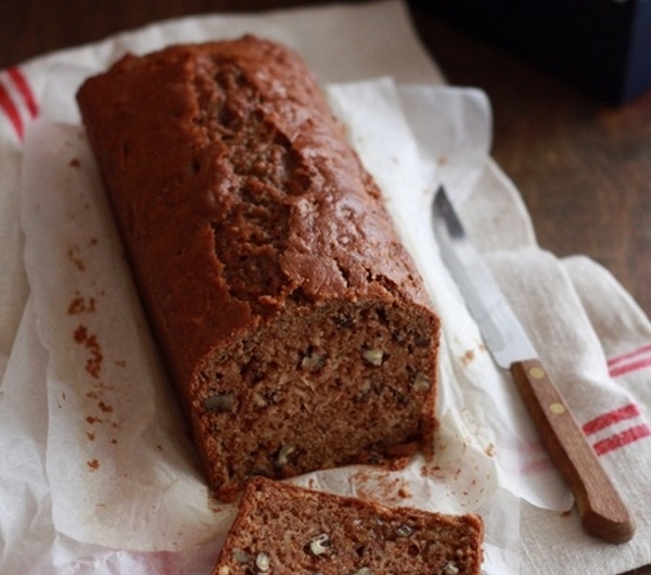 Pierwsza wersja jest z dodatkiem jogurtu owczego, z syropem klonowym i małym dodatkiem cukru trzcinowego (w butelce widniała już tylko resztka syropu…), lecz często zamiast cukru dodaję garść posiekanych daktyli, które dosładzają ciasto. Druga wersja jest bezmleczna, z większą ilością syropu klonowego i z dodatkiem soku jabłkowego (prosto z farmy :)). Możemy użyć orzechów, jakie lubimy (u mnie najczęściej pekany), dodać garść rodzynek czy suszonej żurawiny, możemy przygotować wersję korzenną lub bardziej cytrusową . Dzięki temu, że keks jest mało słodki, sprawdza się również jako energetyczne śniadanie (również np. z dodatkiem mało słodkiego dżemu pomarańczowego).