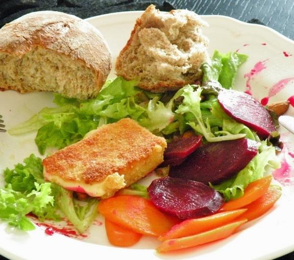wodą. Piec 20 minut. Podać z panierowaną goudą i