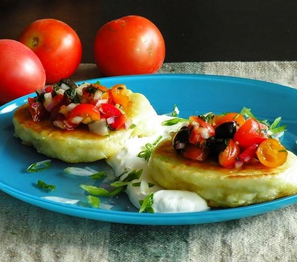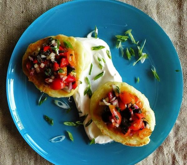 cukinii. Zostawić do wyrośnięcia, około 30 minut. W tym czasie przygotować salsę, łącząc wszystkie składniki. Odstawić do lodówki.Podwojone ciasto wymieszać z