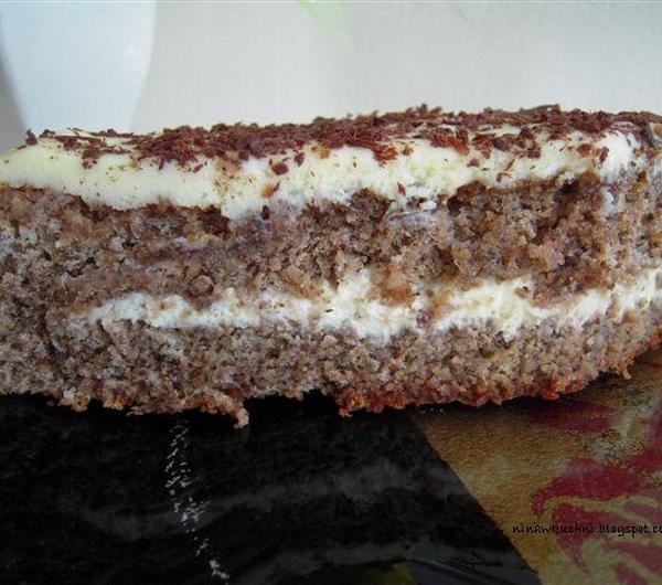 orzechową.Piec w dużej tortownicy (27 cm) ok. 45 minut w temp ok. 200 stopni (u mnie 180st. C). Sprawdzić patyczkiem czy jest suchy w środku.Krem:Inspiracja: