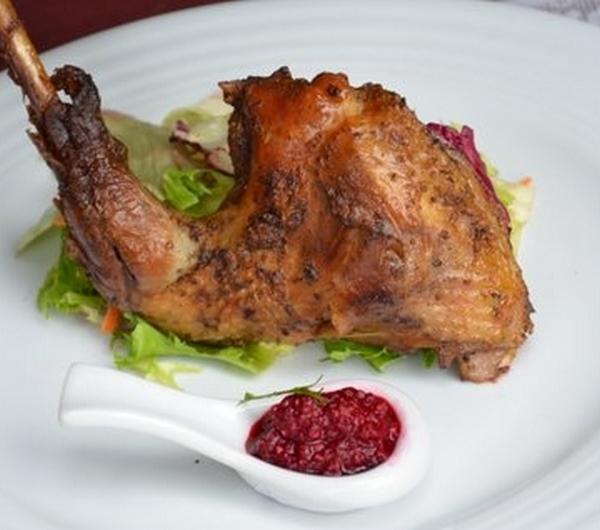 cukrem.Na talerz wykładamy naszą perliczkę, układamy