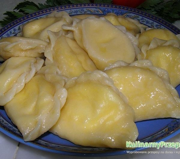 Składniki1/2 kg. mąki1 jajkooko.1/2 szkl. ciepłej wody1/2 łyżeczki soli2-3 łyżki stopionego masła albo oliwy z oliwekFarsz1/2 kg. białego sera (dobrze odciśniętego)c. waniliowy1 żółtkocukier, sól do smakuDodatkowopół kostki masłaSposób przygotowaniaDo mąki dodać wszystkie składniki, wyrobić ciasto do uzyskania lśniącej masy. Następnie wyłożyć na podsypaną mąką stolnicę, dość cienko rozwałkować, wykrawać szklanką krążki.FARSZ: ser rozetrzeć w makutrze, jajko wyszorować, sparzyć, do sera dodać żółtko, cukier waniliowy, sól i cukier do smaku, jeśli ser jest za rzadki można dosypać mleka w proszku.Na krążki nakładać farsz, dobrze zlepić brzegi. Gotowe pierogi wrzucać do wrzącej wody, delikatnie zamieszać drewnianą łyżką, gotować na wolnym ogniu, gdy wypłyną pogotować jeszcze jakieś 2 minuty. Po ugotowaniu pierogi zahartować, czyli przełożyć na chwilę do zimnej wody, odcedzić. Pół kostki masła stopić i polać pierogi.Wszystkie treści oraz zdjęcia umieszczone na stronie są własnością ich autorów i zabrania się ich kopiowania i umieszczania na innych seriwsach bez wcześniejszej zgody autora.Copyright 2013 KulinarnyPrzepis.plvividlab