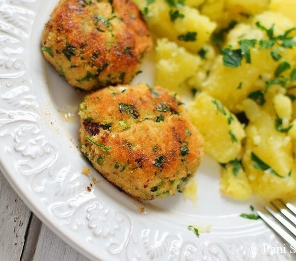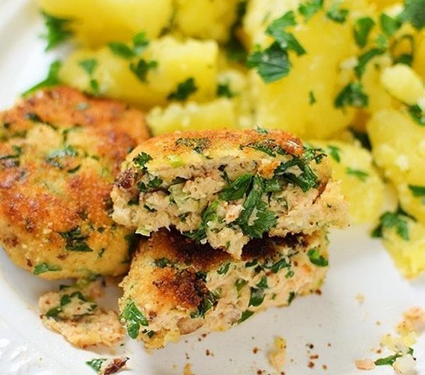 Składniki:7 sztuk300 g łososia wędzonego na gorącopęczek natki pietruszki1 łodyżka cebulki ze szczypiorkiem1 jajko1 łyżka soku z cytrynyok. ½ łyżeczki otartej skórki z cytryny1 łyżka majonezu½ łyżeczki musztardy w proszkusólpieprzbułka tarta (do obtoczenia)olej (do smażenia)Wykonanie:Łososia rozdrabniamy na mniejsze elementy i przekładamy do miski. Natkę pietruszki i cebulkę ze szczypiorkiem siekamy – łączymy z łososiem. Dodajemy jajko, majonez, musztardę, sok i skórkę z cytryny i dokładnie mieszamy. Doprawiamy pieprzem oraz solą ( z solą uważamy, bo łosoś jest już słony).Z przygotowanej masy formujemy dłońmi niewielkie kotleciki i obtaczamy je w bułce tartej.Na patelni rozgrzewamy olej i smażymy kotleciki po kilka minut z każdej strony.Podajemy z ziemniakami, frytkami lub w bułce z dowolnymi dodatkami.Smacznego!