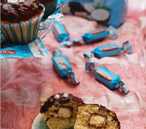 Składniki:ok 15 sztukMuffinki:300 g (ok. 1 i ¾ szklanki) mąki pszennej1 szklanka brązowego cukru2 łyżeczki proszku do pieczenia½ łyżeczki soli2 szklanki wiórków kokosowych2 duże jajka1 i ¼ szklanki jogurtu pitnego waniliowego2 łyżeczki ekstraktu waniliowegoziarna z ½ laski wanilii70 g roztopionego masła15 cukierków „Michałków” kokosowychDekoracja:50 g gorzkiej czekolady1 łyżeczka masłałyżka kandyzowanego kokosaWykonanie:Muffinki: W dużej misce mieszamy ze sobą mąkę, proszek do pieczenia, sól, cukier. Dodajemy wiórki kokosowe.W mniejszej misce mieszamy jajka, jogurt, ekstrakt waniliowy. Dodajemy ziarna z po łowy laski wanilii (w tym celu przecinamy laskę wzdłuż i ostrym nożem wybieramy ziarna).W środku miski z suchymi składnikami robimy wgłębienie i wlewamy zawartość drugiej miski. Delikatnie wykonujemy kilka ruchów silikonową szpatułką, tak aby składniki niemal całkowicie się połączyły. Dodajemy roztopione masło i mieszamy, aż masło połączy się z pozostałymi składnikami.Formę do muffinek wykładamy papilotkami. Do każdej wlewamy po łyżeczce ciasta. Układamy po kokosowym „Michałku” i wylewamy kolejną porcję ciasta. Cukierek powinien być pokryty ciastem.Piekarnik nagrzewamy do 175°C. Muffinki pieczemy koło 25-35 minut, aż będą rumiane z wierzchu.Po wyjęciu studzimy je na kratce.Dekoracja: Kandyzowanego kokosa kroimy na mniejsze cząstki. Czekoladę z masłem rozpuszczamy w kąpieli wodnej. Ostudzone muffinki smarujemy za pomocą pędzelka czekoladą i przyozdabiamy kokosem.Smacznego!