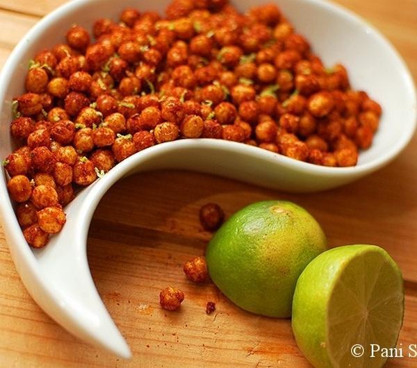 Składniki:puszka ciecierzycyłyżeczka wędzonej paprykiłyżeczka sproszkowanego chili¼ łyżeczki cukru¼ łyżeczki soli¼ łyżeczki świeżo zmielonego pieprzusok z ¼ limonkistarta skórka z limonkiolej do smażeniaWykonanie:Ciecierzycę odsączamy. Jeśli starczy nam cierpliwości to obieramy ziarenka z błonek.W niewielkiej misce mieszamy przyprawy.Na patelnię wylewamy olej, tak aby całe dno było pokryte. Rozgrzewamy do czasu, aż olej zacznie skwierczeć i smażymy ciecierzycę przez około 5 minut. Powinna się zrobić złocista.Talerz wykładamy ręcznikiem papierowym i przekładamy usmażoną ciecierzycę, aby odsączyć ją z oleju. Po chwili przerzucamy do miski z przyprawami i potrząsamy, aby się cała w nich obtoczyła.Na koniec skrapiamy sokiem z limonki i posypujemy startą skórką z limonki.Podajemy od razu.Smacznego!