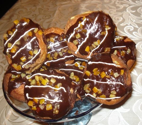 smalcu na brązowo złoty kolor. Upieczone odkładać na talerz. Powidła do szprycy do nadziewania i wstrzykiwać do środka. Wierzch polać polewą zrobić dekoracje