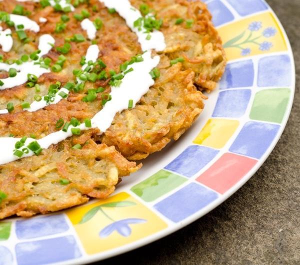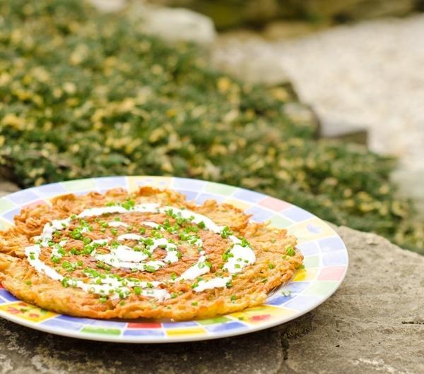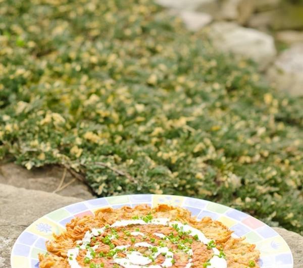 Składniki1,5 kg ziemniaków3 łyżki mąki3 ząbki czosnku2 jajasólpieprzolej do smażeniaCzas przygotowania: 40 minPrzepis na: Bardzo chrupiące placki ziemniaczanePogoda taka piękna, że aż serce boli, kiedy trzeba siąść przy komputerze. Ale co zrobić, jaki zawód, taka praca. Jednak chwila na obiad w ogrodzie się znalazła. Polecam wszystkim. No, a przynajmniej na tarasie lub balkonie, jeśli ogrodu brak.Placki ziemniaczane goszczą u nas stosunkowo rzadko. Ostatnio jednak w mojej kuchni pojawił się blender z tarką, więc może uda się je robić częściej.Tradycyjnie placki ściera się na małych oczkach. Ale wtedy wydają mi się jakieś takie surowe w środku, a na dodatek strasznie piją tłuszcz. Moja propozycja jest nieco inna.Ścieram ziemniaki na dużych oczkach. Czosnek przeciskam przez praskę i dodaję do ziemniaków. Teraz jeszcze mąka, jaja, sól i pieprz. Mieszam wszystko.Na patelni rozgrzewam olej i łyżką formuję bardzo cienkie placki. Ich wielkość to już rzecz gustu. Smażę z obu stron, aż się ładnie zarumienią. Przekładam na chwilę na ręczniki kuchenne, żeby odsączyć tłuszcz. Teraz odrobina śmietany i szczypiorku, i zapach jest taki, że jutro pewnie sąsiedzi powtórzą mój dzisiejszy obiad ;) Aha, z podanej ilości składników wyszło tyle placków, że objadły się cztery osoby i jeszcze jakiś samotny placek leży i czeka na chętnego :) Smacznego!