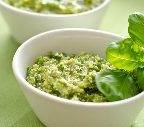Składniki1 spory krzaczek bazylii (około 2 szklanek liści)100 g orzeszków nerkowca50 g parmezanu2 duże ząbki czosnkusól5 łyżek oliwy z oliwekmakaronCzas przygotowania: 10 minPrzepis na: Na zielono – pestoPesto, które lubię, musi być zrobione w domu. Kupne nie dość, że drogie, to jeszcze nieraz występuje z dodatkami, które mi nie odpowiadają zupełnie. Kiedyś trafiłam na pesto z chili i mnóstwem soku z jabłek. To mnie nauczyło, że skład trzeba dokładnie czytać. Według mnie było po prostu niejadalne. Smakowo mniej więcej połączenie octu z papryką.Tradycyjnie do pesto daje się orzeszki piniowe. I najczęściej takich używam. Ale dzisiaj z braku laku proponuję orzeszki nerkowca.Orzeszki wrzucam do blendera i rozdrabniam. To samo robię z bazylią i czosnkiem. Mieszam wszystko razem, dosypuję starty drobno parmezan i sól. Do tego dolewam oliwę. U mnie wyszło koło 5 łyżek. Nie upieram się jednak przy takiej ilości – wszystko zależy od tego, jak duże były liście bazylii i jak bardzo pozostałe składniki piją oliwę. Dolewam tak, żeby pesto nie było zbyt suche, ale też, żeby nie kapało mi z widelca.Pozostaje ugotować makaron, wymieszać z pesto i zjeść fajny, wiosenny obiadek :) Smacznego!