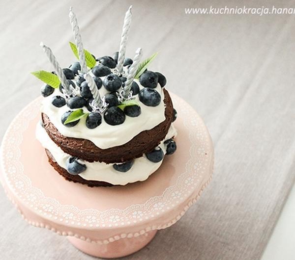 Lubię nietypowe ciasta urodzinowe i często eksperymentuje z różnymi smakami i dodatkami. Biszkopt na podstawę tortu jest świetny, ale to nie jedyne ciasto, które się sprawdza. Równie słodkim i mniej popularnym rozwiązaniem jest brownie . Można połączyć je z bitą śmietaną oraz owocami sezonowymi. Efekt obłędny.50 g mąki65 g gorzkiej czekolady65 g masła65 g cukru2 jajabita śmietana, borówki amerykańskie, liście werbeny cytrynowejCzekoladę z masłem rozpuszczamy w kąpieli wodnej. Jajka ubijamy z cukrem przez 5-6 minut. Następnie dodajemy czekoladę z masłem i miksujemy. Na sam koniec dosypujemy mąkę. Całość dokładnie mieszamy. Ciasto rozlewamy do dwóch foremek o średnicy 11-14 centymetrów. Ciasta pieczemy przez 16-20 minut w piekarniku rozgrzanym do 200 stopni. Po ostudzeniu jeden placek układamy na paterze albo talerzu, przekładamy go bitą śmietaną oraz borówkami amerykańskimi, po czym nakładamy drugi placek i kolejną warstwę bitej śmietany i borówek. Całość wykańczamy liśćmi werbeny zielonej.
