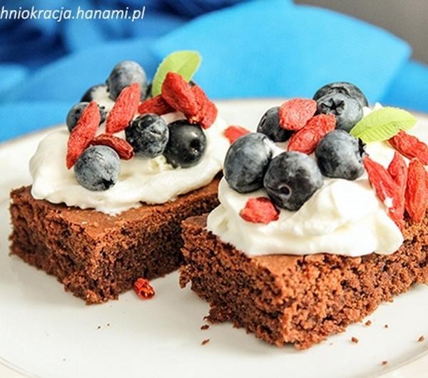 waniliowy. Całość dokładnie mieszamy. Ciasto wylewamy na blachę albo do formy na wysokość nie większą niż 1,5-2 cm. Ciasto pieczemy przez 16-25 minut w piekarniku rozgrzanym do 200 stopni. Ciasto pieczone 16-20 minut wyjdzie brownie, piekąc 25 minut otrzymamy niskiego murzynka. Gotowe ciasto podajemy wedle uznania, ja proponuję ozdobić je