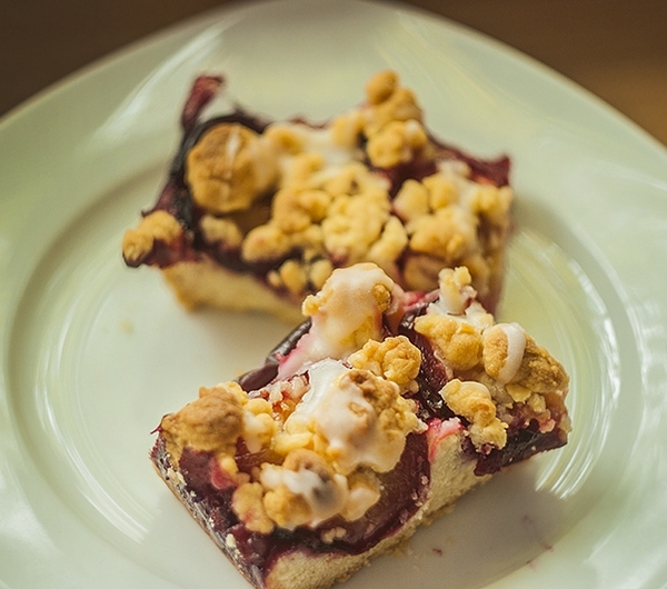 śliwek, posypujemy kruszonką. Pieczemy około 1h w 175 stopniach. Na całkowicie wystygnięto ciasto, wylewamy