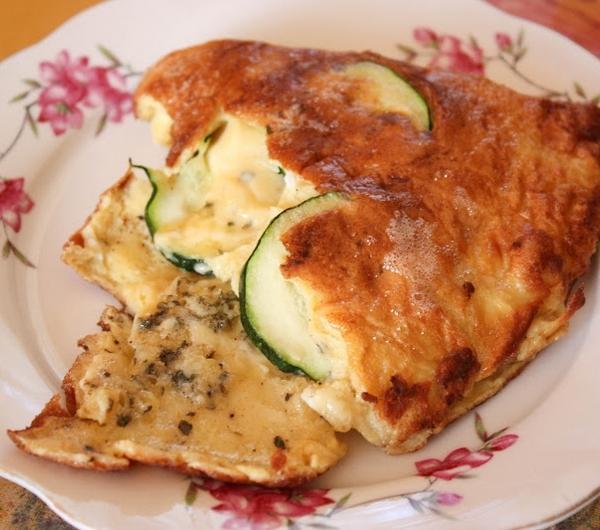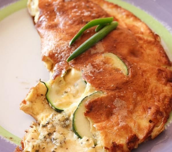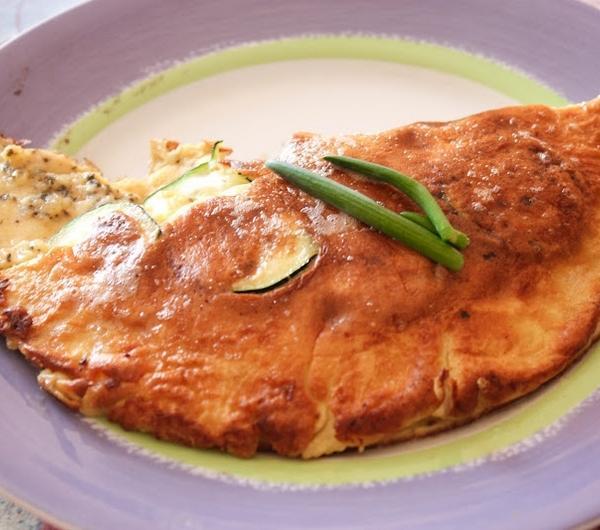 3 jajkapół cukinii2 łyżki mlekałyżka mąki2 łyżki masłastarty serziołaszczypioreksól, pieprzJajka wbić do miseczki, doprawić solą,pieprzem i ziołami.Wlać mleko.Wsypać mąkę.Roztrzepać widelcem wszystko.Do masy dodać pokrojoną w plasterki cukinię.Masło roztopić na patelni.Jak będzie skwierczeć wylewamy masę.Gdy masa od dołu będzie ścięta, ale wierzch jeszcze wilgotny dodajemy starty ser.Smażyć wtedy jeszcze ok.30-60sek. i złożyć omlet na pół.Pozostawić na patelni jeszcze przez ok.30sek aby środek się dopiekł.Zsunąć omlet na talerz i podawać ze szczypiorkiem.