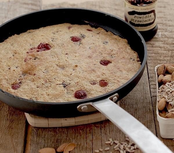 spodu.Następnie wstawić patelnię do piekarnika, nagrzanego do 180 stopni i piec, aż jego góra zacznie się rumienić.Podawać ciepły, np. z powidłami śliwkowymi lub polany
