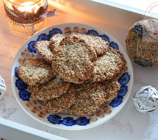 Tak bardzo zasmakowały mi ciasteczka ze słonecznika, które robiłam ostatnio, że postanowiłam pokombinować i zrobić podobne z innych składników. Wróciłam wczoraj z pracy tak zmęczona i podminowana, że najchętniej to bym od razu zaszyła się pod kocem i zasnęła.Ale wiem, że potem czułabym się jeszcze gorzej. Pognałam więc do miejsca, gdzie odpoczywam i zapominam o całym stresie dnia, do kuchni i napiekłam ciasteczek. Od razu wszystko przeszło, uleciało z wiatrem i wyszło słońce. To najlepsza terapia. A potem założyłam dresy, moje magiczne buty i poleciałam pobiegać. To najlepsze sposoby na wszelkie smutki i dolegliwości.Zapraszam :-)Składniki:- 200 g ziaren słonecznika- 100 g płatków migdałów- 100 g sezamu- 100 g siemienia lnianego- 2 łyżki nasion chia- 4 jajka (miałam duże)- 50 g cukru trzcinowego- 50 g mioduWykonanie:Nasiona słonecznika wraz z płatkami migdałów musimy zmielić na mączkę o grubszej granulacji, ja zmiksowałam w naczyniu z nożami blenderem. Przesypujemy mączkę do miski, dodajemy sezam, siemię lniane i nasiona chia, cukier oraz miód. W tym samym naczyniu blenderem miksujemy 2 całe jajka i 2 żółtka. Dodajemy do miski i mieszamy wszystko łyżką, aż składniki się połączą. Z masy formujemy kuleczki i lekko je spłaszczamy, układamy na blaszce wyłożonej papierem do pieczenia. Z podanych składników musimy przygotować sobie dwie blaszki. Ciasteczka smarujemy z wierzchu roztrzepanym białkiem i pieczemy w nagrzanym piekarniku do 180 stopni, przez 15-20 minut, aż się ładnie zarumienią. Ciasteczka studzimy na kratce.Do przygotowania ciasteczek użyłam produktów ze sklepu Magiczne Smaki, produkty możecie kupić w sklepie stacjonarnym w Częstochowie i w sklepie internetowym na Allegro.