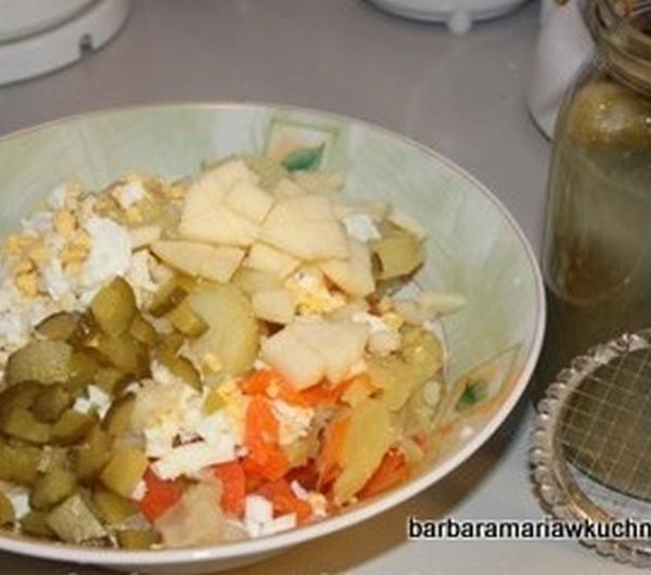 na twardo. Wszystkie składniki pokrój używając specjalnego sitka jak na zdjęciu poniżej lub klasycznie nożem. Dodaj