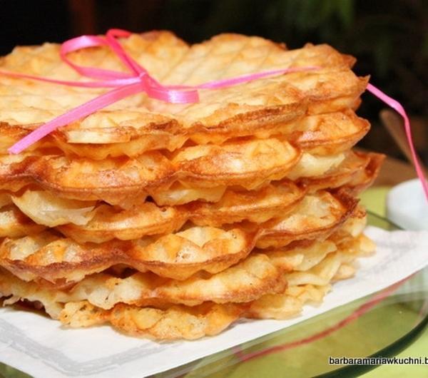 masłem gofrownicę przed pierwszym gofrem. Smaż gofry, aż będą rumiane. Usmażone połóż na kratkę, żeby były chrupiące. Podawaj z