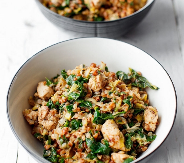 kaszę gryczaną, wymieszać składniki i smażyć przez ok. 1 - 2 minuty. Wlać gorącą