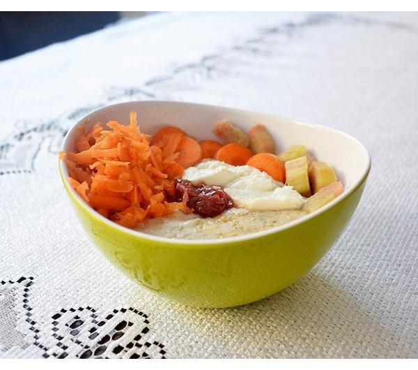 quinoa i płatki owsiane z marchewką, rabarbarem, ricottą i konfiturą z płatków róży, kawa z mlekiemquinoa and oat flakes with carrot, rhubarb, ricotta and rose jam, coffee with milkZnacie pewnie to uczucie, kiedy coś wybija Was z rytmu. Nie, wcale nie subtelnie - spada na Was grom z jasnego nieba i nie wiecie, jak zareagować, a słów dziwnie brakuje.Mnie dotknęło to wczoraj.Mijam sklepowe półki, szukam dyni, mąki, w myślach dyniowe placki i aromat imbiru... Wtem Mikołaj. Boże Narodzenie. Santa i kolędnicy, pierniki i makowce. Hej. Hej. Hej?Świąteczne pierniki, ciasteczka w kształcie mikołajów, świąteczne strucle z makiem i czekoladowe cukierki-renifery.Gdzie ja jestem?Jestem w Niemczech, i uroczyście przepraszam za marudzenie, cofam wszelkie słowa zdziwienia, jakie wypowiedziałam kilka lat temu, oglądając świąteczne produkty w Polsce dzień po Święcie Zmarłych. Cofam. I stwierdzam, że Niemcy robią sobie krzywdę, bo nic nie psuje uroku świąt tak, jak wstępne obchodzenie ich już na początku września.Swoją drogą, od kilku dni delektuję się smakiem konfitury z płatków róży firmy Premium Rosa . Czas, żebym co nieco o niej napisała. Od czego zacząć? Może od zniewalającego zapachu, czy raczej wspaniałego smaku? Naprawdę, wierzcie mi - nie jestem pewna, czy kiedykolwiek jadłam coś tak dobrego ze słoiczka. Pomijam domową konfiturę Mamy, jednak poza nią, z ręką na sercu - to NAJLEPSZA konfitura, jaką jadłam. Dostałam ją w ramach współpracy, lecz sprawdziłam cenę - jest nieco droga jak na konfiturę - lecz wierzcie, warta swej ceny. Ja na pewno kupię kolejny słoiczek. Gorąco polecam!