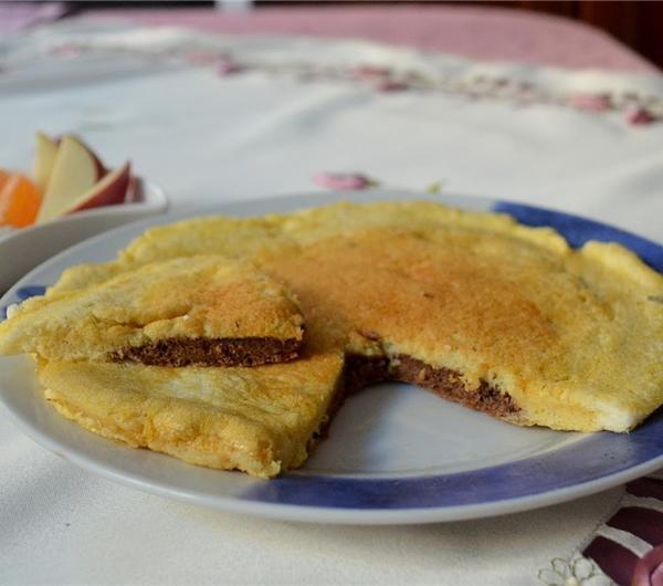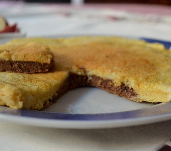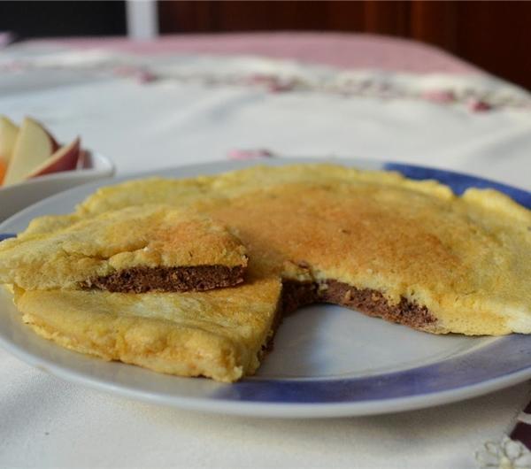 Leniwy poranek. A to? To jest zdecydowanie jeden z najlepszych omletów, jakie jadłam!/1 porcja/- 2 jajka- 2 łyżki mąki- 2 łyżki mleka- 1 łyżeczka cukru trzcinowego- 1 płaska łyżeczka naturalnego kakao+ masło do smażeniaBiałka oddzielamy od żółtek. Żółtka miksujemy z mąką, mlekiem i stewią. W osobnym naczyniu ubijamy na sztywną pianę białka, a następnie dodajemy je do ciasta i delikatnie mieszamy. Na patelni rozpuszczamy masło. 3/4 ciasta wylewamy na patelnię, a pozostałe mieszamy z kakao i układamy na poprzednio nałożonej porcji. Smażymy do zarumienienia.