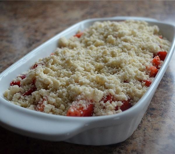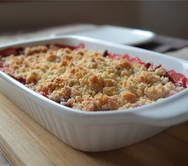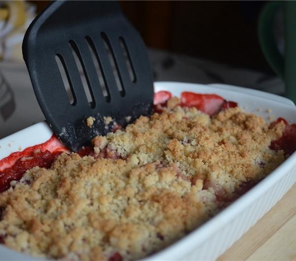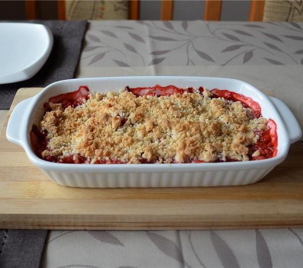 truskawkami, a na to kruszymy ciasto. Wkładamy crumble na 30 minut do piekarnika nagrzanego do 180*C. Podajemy ciepłe.