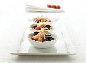 Czas przygotowania: do 30 minutPoziom trudności: łatweRegion: kuchnia hiszpańskaIlość osób: dla 4 osóbŚrednia ocena potrawyOceń przepis (7 głosów)Sałatka z ciecierzycy, papryki i tuńczyka w towarzystwie czarnych hiszpańskich oliwek - składniki:2 szklanki ugotowanej ciecierzycy2 upieczone papryki16 hiszpańskich zielonych lub czarnych oliwek2 puszki tuńczyka w oliwiedymkaoliwa z oliwekocet winnysól i pieprz do smakuSałatka z ciecierzycy, papryki i tuńczyka w towarzystwie czarnych hiszpańskich oliwek - sposób przygotowania: Pieczoną paprykę pokrój w paski, dymkę posiekaj w bardzo drobną kostkę. Włóż do salaterki posiekaną dymkę, paprykę, ciecierzycę, podzielone porcje tuńczyka oraz oliwki. Tak przygotowaną sałatkę polej dressingiem przyrządzonym z odrobiny oliwy, octu winnego, soli i pieprzu. Przed podaniem posyp majerankiem, oregano lub świeżą bazylią.Pączki serowe z polewą czekoladowąTatar wołowy na grzankach [Jakub Kuroń gotuje]Falafel z zielonym tahini [Jakub Kuroń gotuje]Kruche ciasteczka z włoskimi orzechamiDodaj swój przepis
