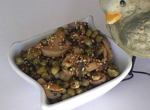 Czas przygotowania: do 30 minutPoziom trudności: łatweIlość osób: dla 2 osóbŚrednia ocena potrawyOceń przepis (2 głosy)150 g ugotowanej fasolki mungpuszka pieczarek w naturalnej zalewiełyżka ziarna sezamułyżeczka sosu sojowegołyżeczka oleju sezamowegołyżka posiekanej natki pietruszkiświeżo zmielony czarny pieprzczosnek granulowanyFasolka mung z pieczarkami i sezamem - sposób przygotowania: Pieczarki odcedzić z zalewy i wrzucić co miseczki. Dodać fasolkę i pietruszkę. Wymieszać.Sezam uprażyć na patelni i dodać do fasolki i pieczarek. Skropić całość sosem sojowym i olejem sezamowym. Doprawić do smaku pieprzem i czosnkiem.Można jeść na zimno lub podgrzać chwile w piekarniku/mikrofalówce.Kurczak z pieczarkami i boczkiemPączki serowe z polewą czekoladowąTatar wołowy na grzankach [Jakub Kuroń gotuje]Falafel z zielonym tahini [Jakub Kuroń gotuje]Kruche ciasteczka z włoskimi orzechamiDodaj swój przepis