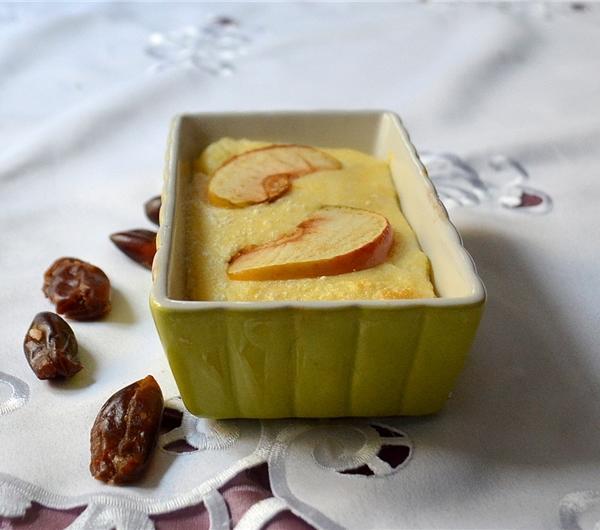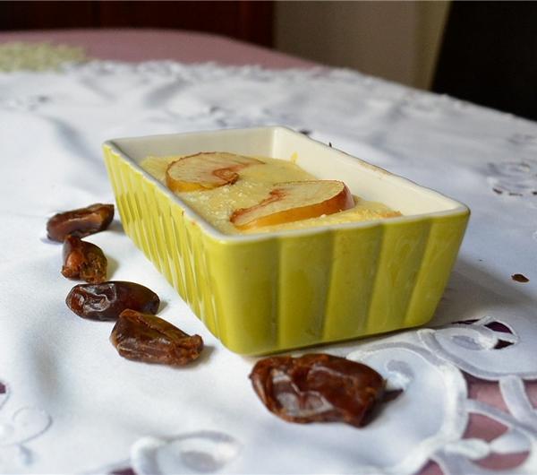 suflet z kaszy manny z jabłkiem, cynamonem i imbirem, daktyle, kawasemolina souffle with apple, cinnamon and ginger, dates, coffee