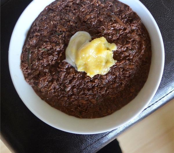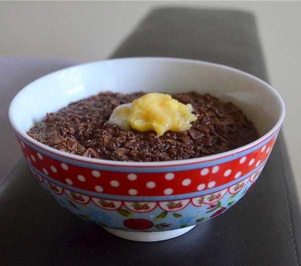 chocolate-zucchini cold oatmeal with lemon curd