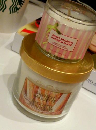Kolejny zakup (na promocji – ha!) pochodzi z Bath & Body Works. Jestem wielką fanką ich świeczek, w szczególności French Baguette ;) Jakieś pół roku temu kupiłam mini świeczuszkę o tym zapachu, którą uwielbiam i którą palę bardzo rzadko, żeby się broń Boże nie skończyła ;) Jaka była moja radość, gdy na stoliku z promocjami znalazłam bagietkową świeczkę! Oprócz niej kupiliśmy jeszcze „Sweet Macaron” – pachnie trochę jak przypalony cukier, ale w taki przyjemny sposób ;)…Another purchase (on sale – ha!) is from Bath & Body Works. I’m a big fan of their candles, especially French Baguette ;) About half a year ago I’ve bought a tiny candle with that scent, that I love and don’t fire to often, so it won’t end ;) Imagine how happy I was, when I saw on sale table baguette candle! We’ve bought another one (but small) – „Sweet Macaron” – it smells a bit like burnt sugar, but in a good way ;)