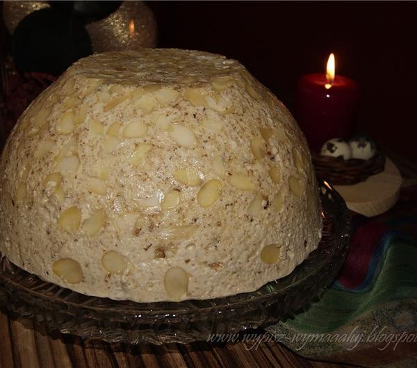 Teoretycznie paschę powinno się przykrywać i odciskać. Wychodzi wtedy jakby sprasowana. Nam taka forma/konsystencja nie odpowiada. Wolimy kremową, delikatną, nie potraktowaną ciężarem, gazą, czym czymkolwiek innym.Od wielu lat postępujemy właśnie według tego przepisu i jedyna sytuacja, kiedy się ona nie udała (bo się "rozjechała"), to moment wykorzystania złego