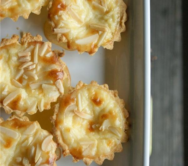 Składniki: na ciasto:50 g maki ryżowej,30 g maki kukurydzianej,2 łyżki mąki ziemniaczanej,40 g migdałów firmy Bakalland,1 jajko,50 g cukru,ewentualnie woda, na masę:1 szklanka mleka,2 jajka,2-3 łyżki zmielonych migdałów Bakalland,2 łyżki maki ziemniaczanej,2-3 łyżki cukru,+migdały Bakalland do posypaniawiśnie z konfitury do dekoracji,Przygotowanie:Migdały zmielić na mączkę. Z podanych składników wyrobić ciasto i odstawić na 30 minut do lodówki. Następnie wyłożyć ciastem foremki do babeczek, ponakłuwać i zapiec w temp. 180 stopni C na złoty kolor. Wystudzić.Mleko zagotować, a w tym czasie mikserem ubić jajka z cukrem i mąką i zmielonymi migdałami. Dodać je do mleka i mieszać do zagotowania i zgęstnienia masy. Wystudzić. Wymieszać z mascarpone.Migdały zalać wrzątkiem i poobierać. Nadziewać babeczki kremem, posypać posiekanymi migdałami. Zapiekać w temp. 180 stopni C około 30 minut. Przed podaniem ułożyć na wierzchu wiśnie z konfitury.