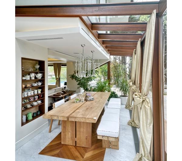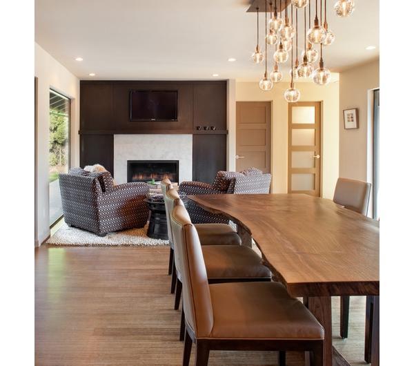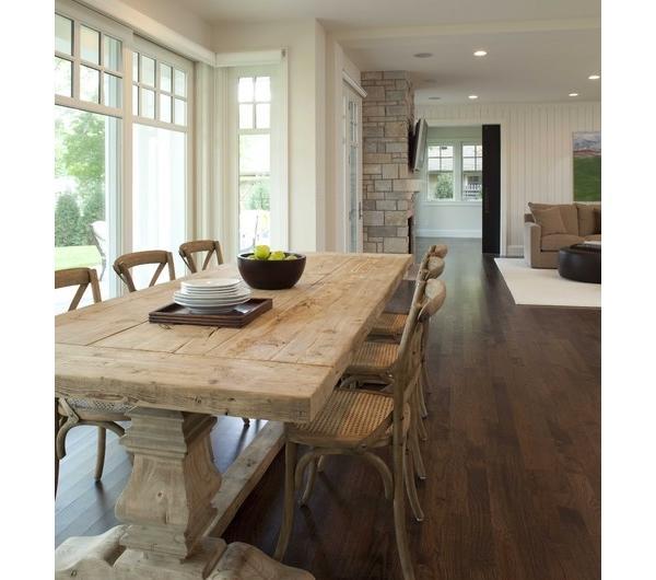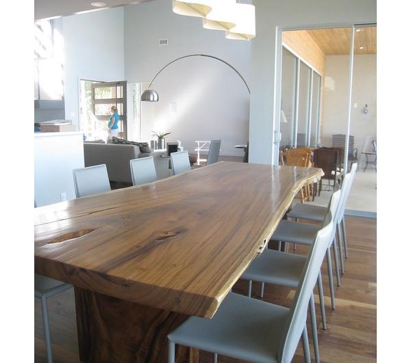 W wielu projektach pojawiają się także mniej lub bardziej obrobione drewniane deski w roli blatu stołu. Jest to swoisty ukłon w stronę desingu w którym natura miesza się z nowoczesnością. Często są to meble z odzysku, czy też zrobione własnoręcznie. Mi ten pomysł podoba się ze względu na ciepło i przytulność jakie wprowadza do pomieszczenia.