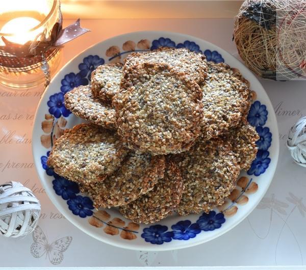 Tak bardzo zasmakowały mi ciasteczka ze słonecznika, które robiłam ostatnio, że postanowiłam pokombinować i zrobić podobne z innych składników. Wróciłam wczoraj z pracy tak zmęczona i podminowana, że najchętniej to bym od razu zaszyła się pod kocem i zasnęła.Ale wiem, że potem czułabym się jeszcze gorzej. Pognałam więc do miejsca, gdzie odpoczywam i zapominam o całym stresie dnia, do kuchni i napiekłam ciasteczek. Od razu wszystko przeszło, uleciało z wiatrem i wyszło słońce. To najlepsza terapia. A potem założyłam dresy, moje magiczne buty i poleciałam pobiegać. To najlepsze sposoby na wszelkie smutki i dolegliwości.Zapraszam :-)Składniki:- 200 g ziaren słonecznika- 100 g płatków migdałów- 100 g sezamu- 100 g siemienia lnianego- 2 łyżki nasion chia- 4 jajka (miałam duże)- 50 g cukru trzcinowego- 50 g mioduWykonanie:Nasiona słonecznika wraz z płatkami migdałów musimy zmielić na mączkę o grubszej granulacji, ja zmiksowałam w naczyniu z nożami blenderem. Przesypujemy mączkę do miski, dodajemy sezam, siemię lniane i nasiona chia, cukier oraz miód. W tym samym naczyniu blenderem miksujemy 2 całe jajka i 2 żółtka. Dodajemy do miski i mieszamy wszystko łyżką, aż składniki się połączą. Z masy formujemy kuleczki i lekko je spłaszczamy, układamy na blaszce wyłożonej papierem do pieczenia. Z podanych składników musimy przygotować sobie dwie blaszki. Ciasteczka smarujemy z wierzchu roztrzepanym białkiem i pieczemy w nagrzanym piekarniku do 180 stopni, przez 15-20 minut, aż się ładnie zarumienią. Ciasteczka studzimy na kratce.Do przygotowania ciasteczek użyłam produktów ze sklepu Magiczne Smaki, produkty możecie kupić w sklepie stacjonarnym w Częstochowie i w sklepie internetowym na Allegro.