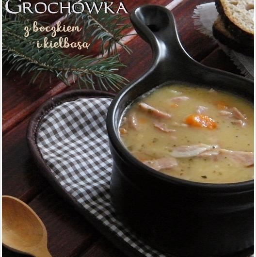 mięsnej.Przepis na grochówkę jaki przedstawiam poniżej pochodzi z dawnych domowych zapisków kulinarnych i zwykle nim się posługuję, gdy tylko nas nachodzi apetyt na tą smaczną zupę. Grochówkę gotuję na
