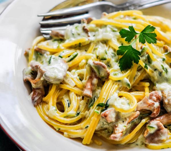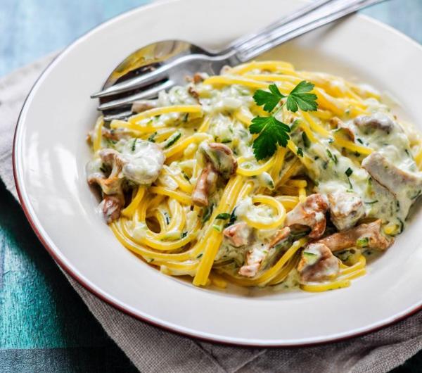 Jeżeli lubicie pomysły na makarony bezglutenowe to oprócz przepisu na sos all’arrabbiata mam dla Was dzisiaj przepis na danie bardziej z kuchni polskiej. Świeże kurki, cukinia, czosnek i szalotka to idealne połączenie gdy mamy sezon letni. Danie jest nie tylko błyskawiczne w przygotowaniu ale i bardzo smaczne.Sos cukiniowo-kurkowy nadaje się jako dodatek do makaronu klasycznego, jak i kukurydzianego. W ostatnim wpisie pisałam już o firmie Sotelii i po raz kolejny bardzo te makarony polecam. Nawet jeżeli nie wyeliminowaliście ze swojej diety glutenu to warto wypróbować te makarony jako swoistą odmianę.Jeżeli chcecie wypróbować domowego makaronu polecam Wam mój przepis .Składniki:około 300g bezglutenowego makaronu typu spaghetti (np. Sotelli)około 200g świeżych kurek1 mała cukinia2-3 ząbki czosnku1 szalotkałyżka masła klarowanegoszklanka śmietanki kremówkiopcjonalnie 1-2 łyżki posiekanej natki pietruszkisól i pieprz do smakuMakaron gotujemy we wrzątku al dente (około 8 minut). Cukinię ścieramy na tarce jarzynowej lub kroimy w drobną kostkę. Kurki dokładnie czyścimy i większe kroimy na pół. Czosnek i szalotkę obieramy i drobno siekamy.Na maśle klarowanym podsmażamy najpierw szalotkę i czosnek. Gdy zaczną mięknąć dodajemy cukinię i delikatnie solimy. Całość mieszamy i podsmażamy aż woda z cukinii odparuje. Dodajemy kurki, mieszamy i smażymy dalej przez około 3 minuty. Dodajemy śmietanę i doprawiamy do smaku solą i pieprzem.Gdy śmietana zacznie gęstnieć dodajemy ugotowany wcześniej makaron. Dokładnie mieszamy i podajemy natychmiast. Opcjonalnie przed podaniem można posypać danie natką pietruszki.