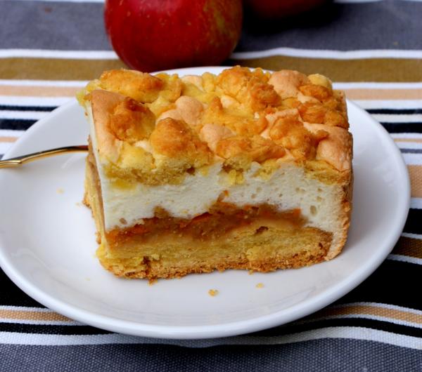 Cukru dodałam tylko do lekkiej słodkości.Ciasto piekłam w okrągłej foremce o średnicy 25 cm dlatego wyszło mi takie wysokie. Lepiej upiec w większej foremce i użyć trochę więcej przesmażonych