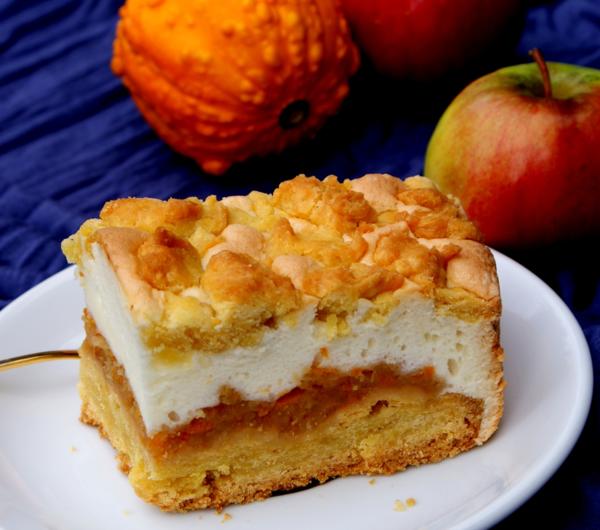 jabłek. Ewentualnie można dodać dyni jak zrobiłam to ja.Ciasto które poskubałam na wierzch leżało w lodówce tylko wtedy kiedy piekł się spód.Gdyby była trudność podczas przesmażania