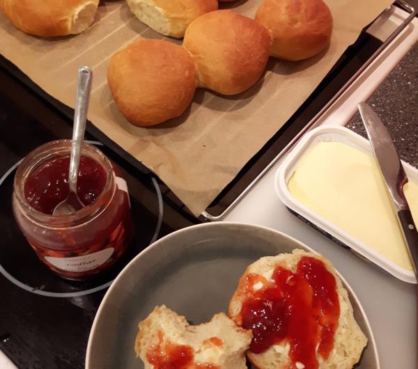 Składniki na ok. 15 sztuk0.5 kg mąki pszennej250 ml ciepłego mleka50 g drożdży świeżych5 łyżeczek cukru brązowego * może być też białypół łyżeczki soli50 ml oliwy z oliwek lub pół kostki masła2 całe jajka