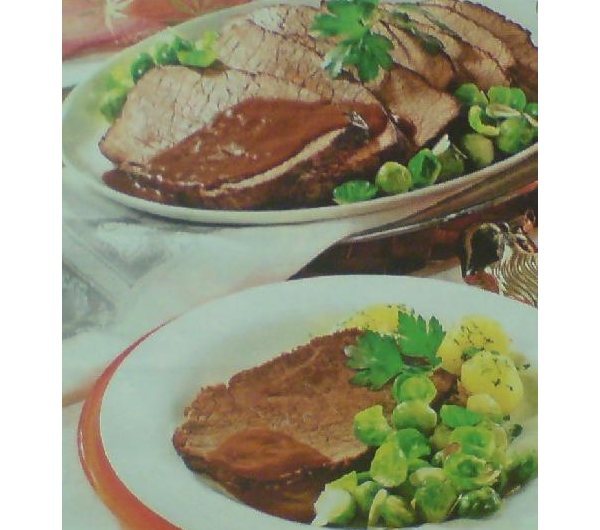 Dodaj przepis do ulubionych!(ilość porcji): 4(z pieczeniem / smażeniem): 200 minut(stopień trudności):Oceń przepisMożesz ocenić ten przepis nie rejestrując się u nas!Średnia ocena użytkowników : 5Ilość ocen : 1SkładnikLogo Ilość Czegowołowina 800 gramówmąka 3 łyżek stołowycholej 3 łyżek stołowychcebula 1 sztukwłoszczyzna 1 sztukskórka chleba 1 sztukprzecier pomidorowy 1 łyżek stołowychliść laurowy 1 sztukwino czerwone 125 mililitrówbrukselka 800 gramówsłonina 60 gramówbazylia 1 łyżek deserowychgałka muszkatołowa według uznaniapieprz według uznaniasól według uznaniaWykonanie:Umyte, osuszone mięso natrzeć pieprzem, sola oraz bazylią. oprószyć mąką i podsmażyć na oleju. Oczyszczoną cebule pokroić na talarki, a oczyszczoną włoszczyznę w kostkę. Cebulę, włoszczyznę oraz skórkę chleba dodać do mięsa i podsmażyć. Wymieszać z przecierem i krótko podsmażyć. Włożyć listek laurowi i wlać wino oraz 400 ml wody i dusić pod przykryciem ok. 2-3 h. Po 90 minutach mięso obrócić. Pieczeń można podlać wodą i co jakiś czas mięso obracać.Oczyszczoną brukselkę blanszować w osolonej wodzie 5 minut i zahartować. Pieczeń wyjąć. Sos przecedzić, zagotować, doprawić do smaku solą, pieprzem oraz gałka. Pieczeń podawać z brukselka i ziemniakami.Autor: BeciaZobacz inne przepisy użykownika!Kuchnia PolskaPotrawy z MięsaWielkanocWigiliaDodaj komentarz:Jeśli chcesz dodać link do tego przepisu na swoją stronę, to wystarczy, że skopiujesz kod poniżej z pola tekstowego i wkleisz go na swoją stronę czy bloga: